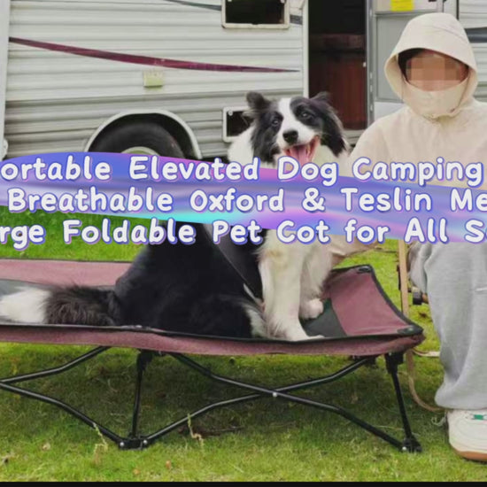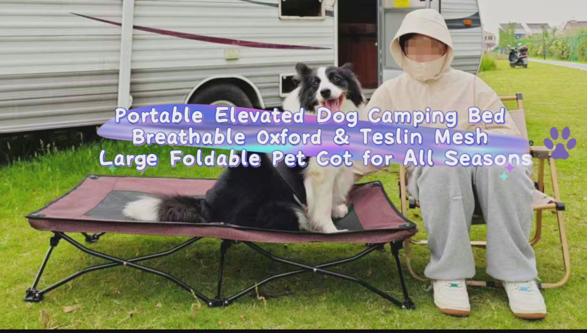 All-Season Elevated Dog Camping Bed | Foldable Breathable Outdoor Pet Cot with Teslin Mesh & Oxford Fabric for Large Dogs