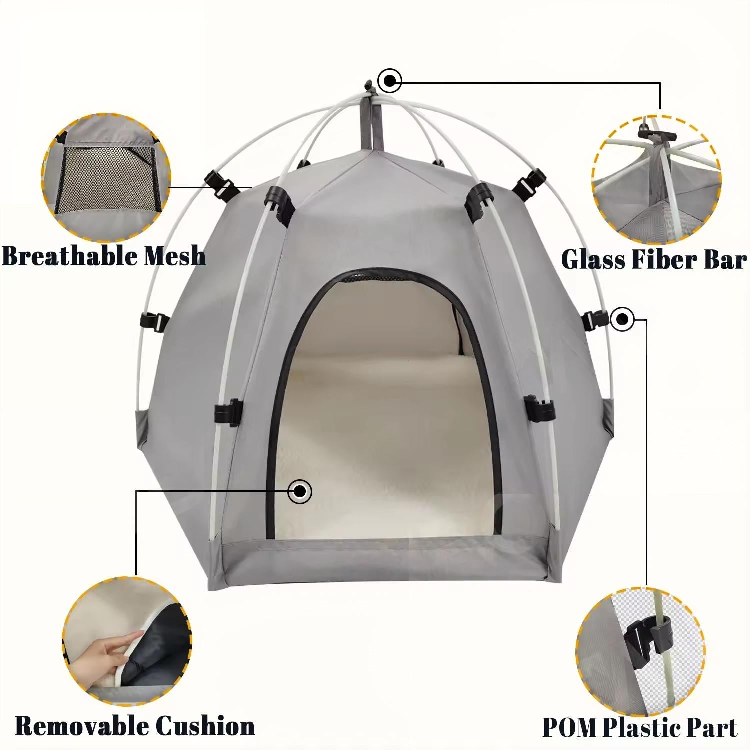 Perfect as an indoor cat house, semi-enclosed pet tent, portable camping tent, or pet lounge bed.