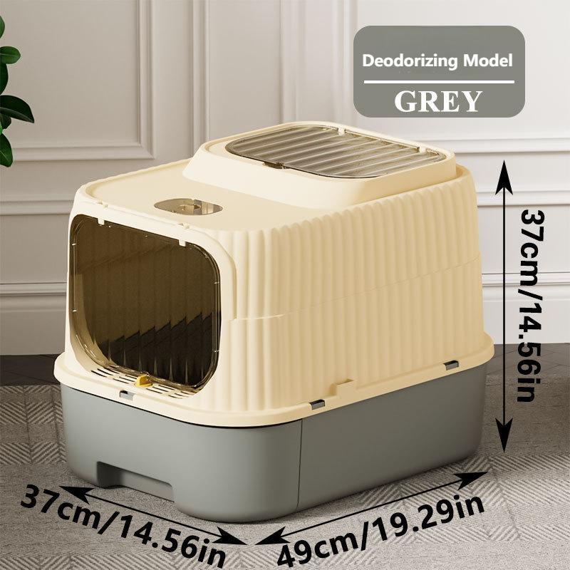 - 2-in-1 Design β Use with the top cover as a fully enclosed litter box, or remove the cover for semi-open use.