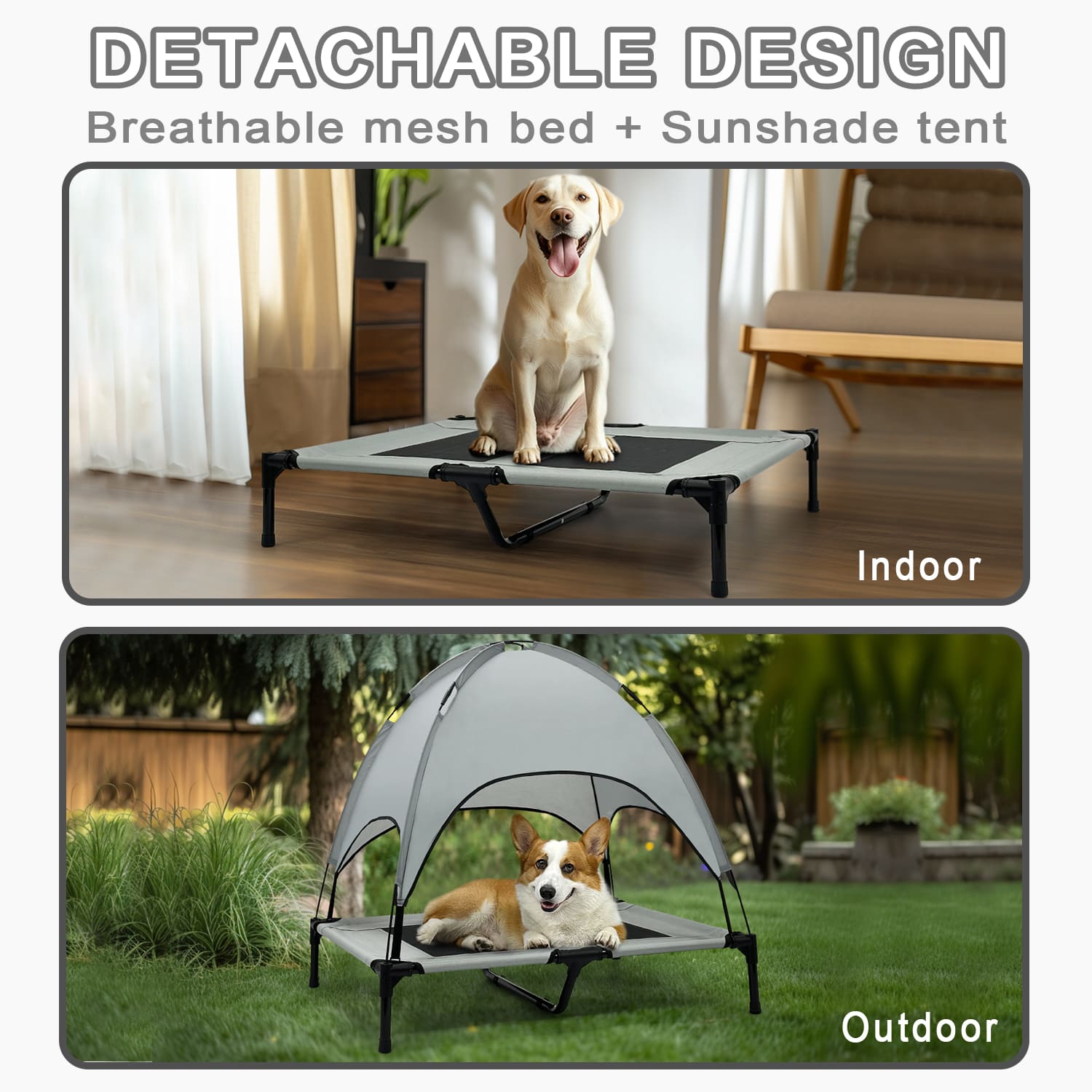Outdoor Elevated Pet Bed with Removable Sunshade & Tent Top – Waterproof Oxford Fabric for Dogs | Portable, Durable & Comfortable