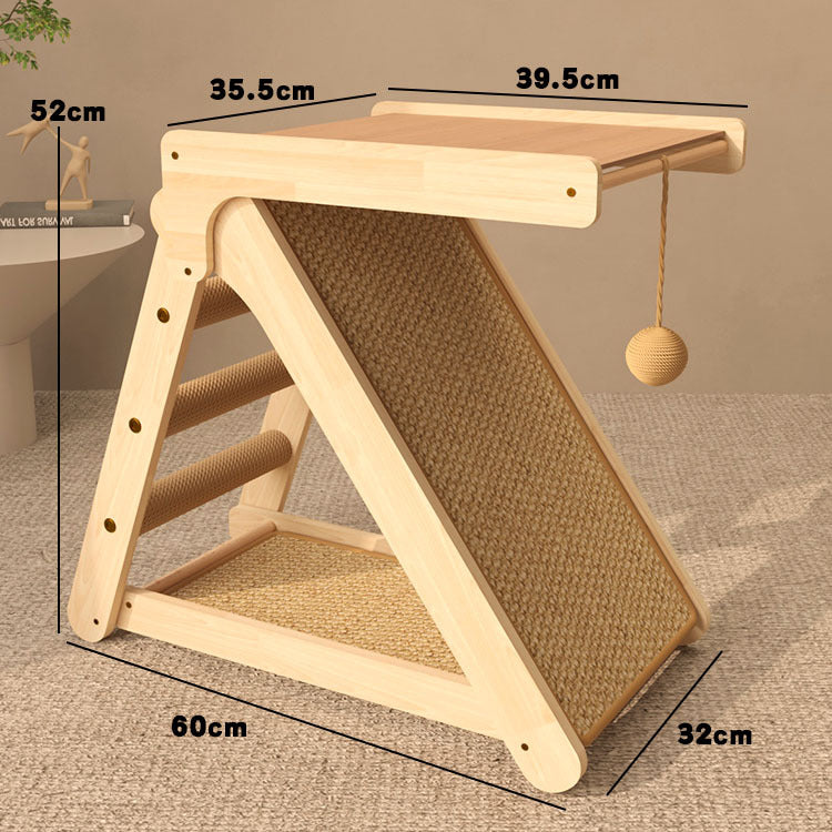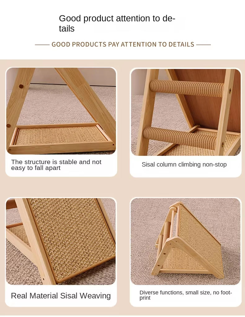 This vertical sisal cat scratcher and bed combo is crafted from solid pine wood, premium sisal mats, and rope columns, offering your cats a safe, eco-friendly, and stylish space. With its space-saving triangular structure, it provides a cozy cat bed, a scratching pad, and a mini cat tree – perfect for small apartments, pet stores, and multi-cat families.