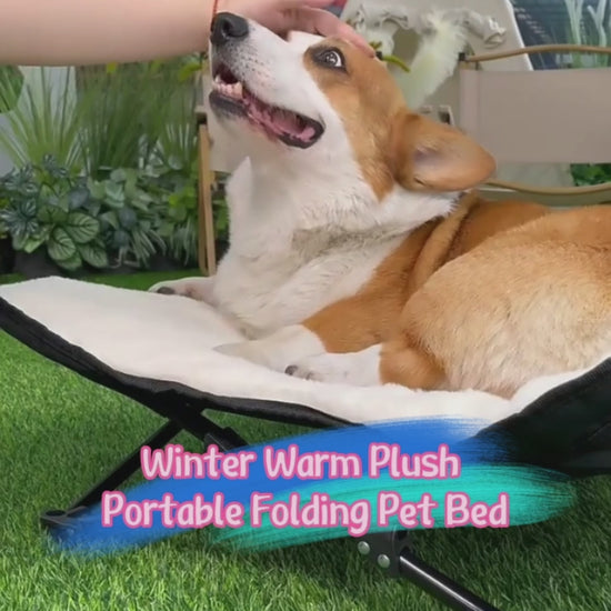 Winter Cozy Elevated Dog Bed | Portable & Foldable Plush Pet Bed | Removable & Washable for Small & Medium Dogs